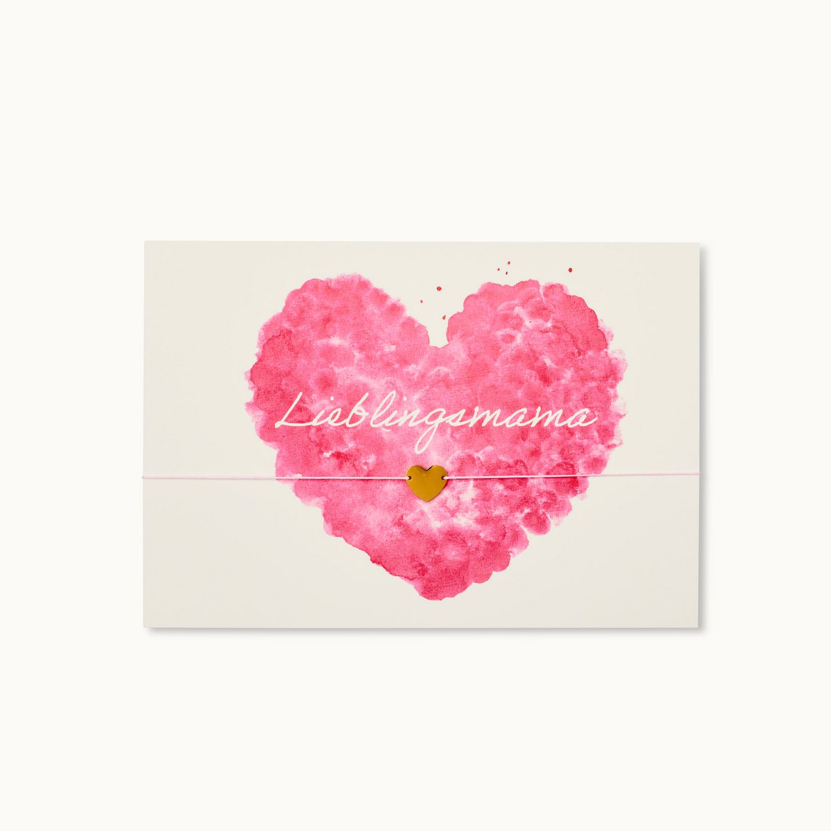 Die perfekte Karte für jede Lieblingsmama mit einem Herz als 18 Karat vergoldeter Anhänger an einem rosafarbenen Armband.