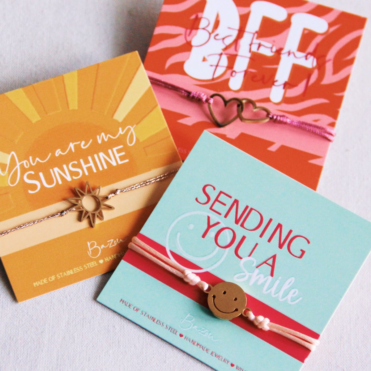 Überraschen Sie Ihre Liebsten mit unseren fröhlichen Grußkarten mit passenden Armbändern! Perfekt, um jemandem zu gratulieren, ihm Erfolg zu wünschen oder ihn einfach wissen zu lassen, dass er großartig ist!