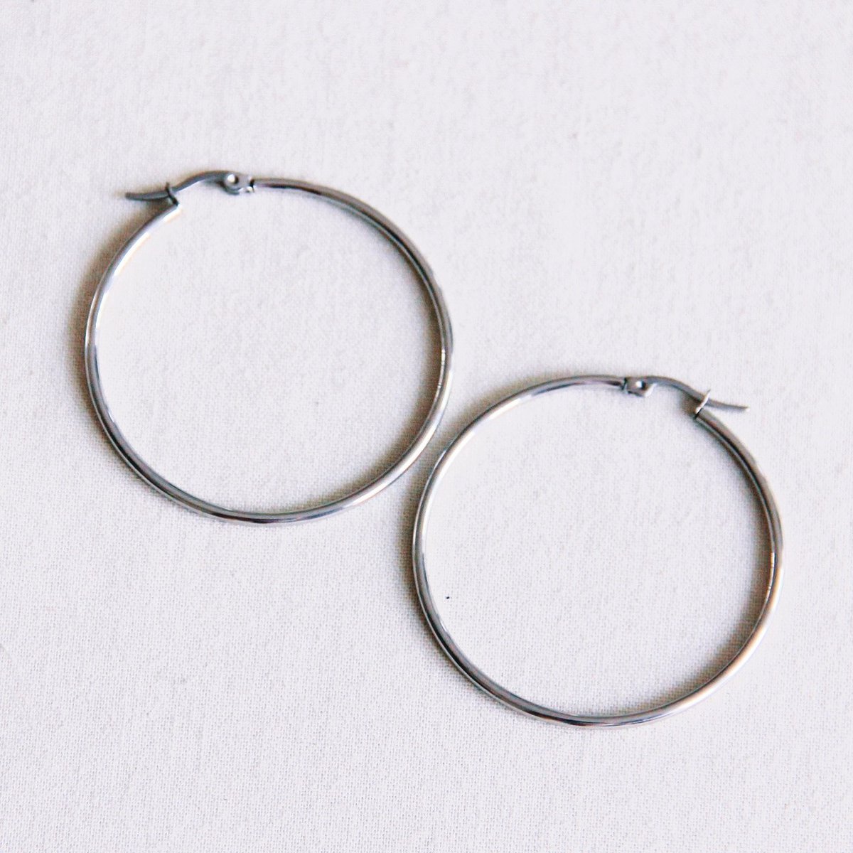 Der Ohrring hat einen Durchmesser von 50 mm und eine Dicke von 1,2 mm