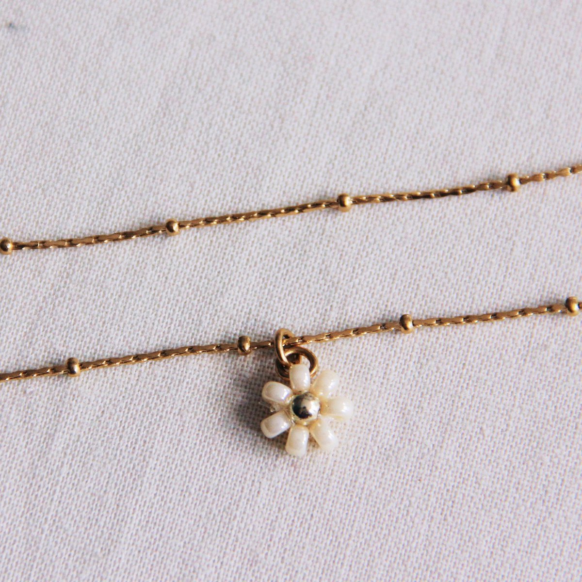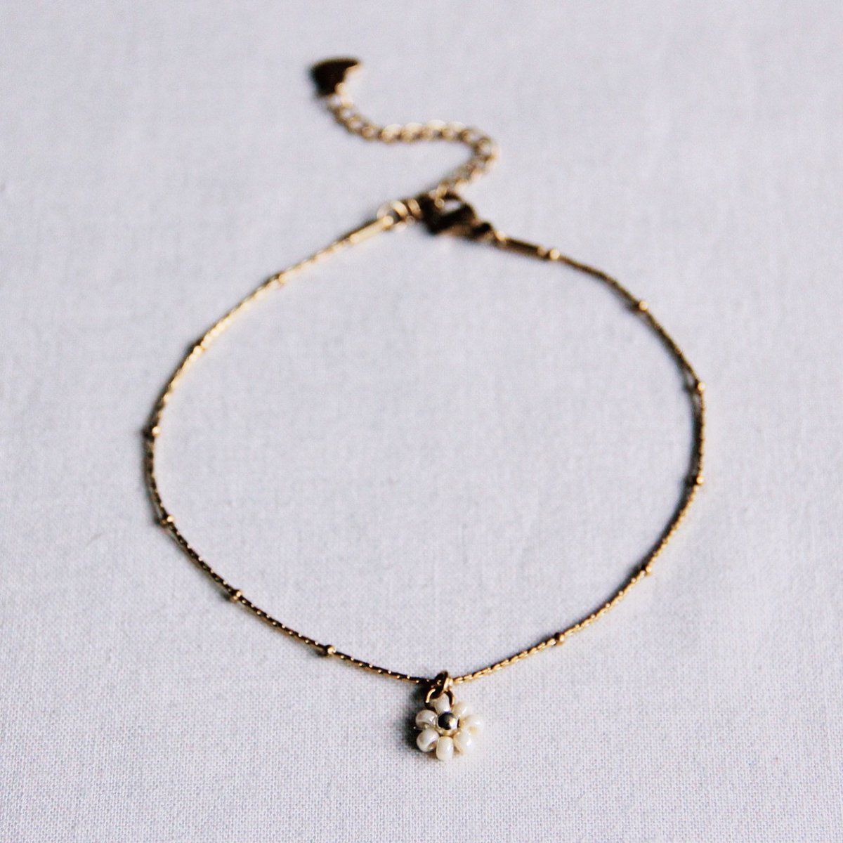 Wie süß sind diese Fußkettchen?! Das Fußkettchen besteht aus einer feinen Kugelkette in Kombination mit einem Gänseblümchen und ist mit einer Verlängerungskette verstellbar.