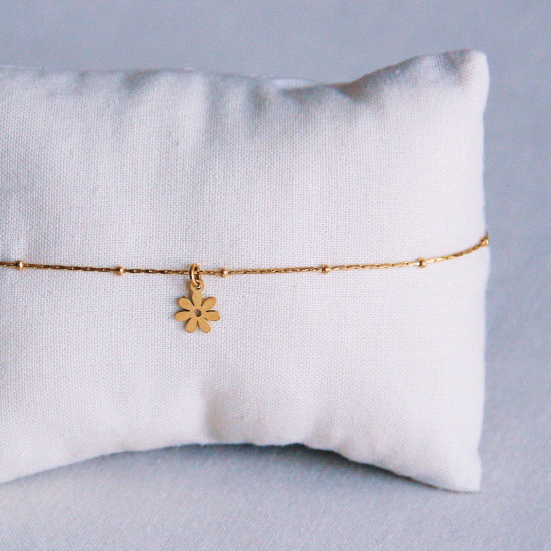 Wie süß sind diese Fußkettchen?! Das Fußkettchen besteht aus einer feinen Kugelkette in Kombination mit einem Gänseblümchen. Es ist mit einer Verlängerungskette verstellbar. Kombinieren Sie dieses Fußkettchen mit unseren Perlenvarianten und kreieren Sie Ihr eigenes cooles „Fußkettchen-Bonbon“!