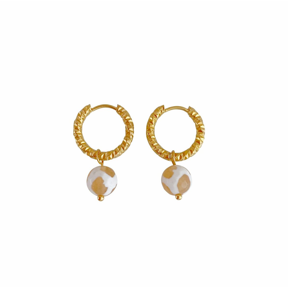 Ohrringe aus hochwertigem Edelstahl mit Dzi-Achat-Anhänger. Die Ohrringe sind verziert und haben einen schönen Glanz. Den Dzi-Achatstein finden Sie in mehreren Schmuckstücken unserer Kollektion, sodass Sie ein schönes Schmuckset zusammenstellen können.