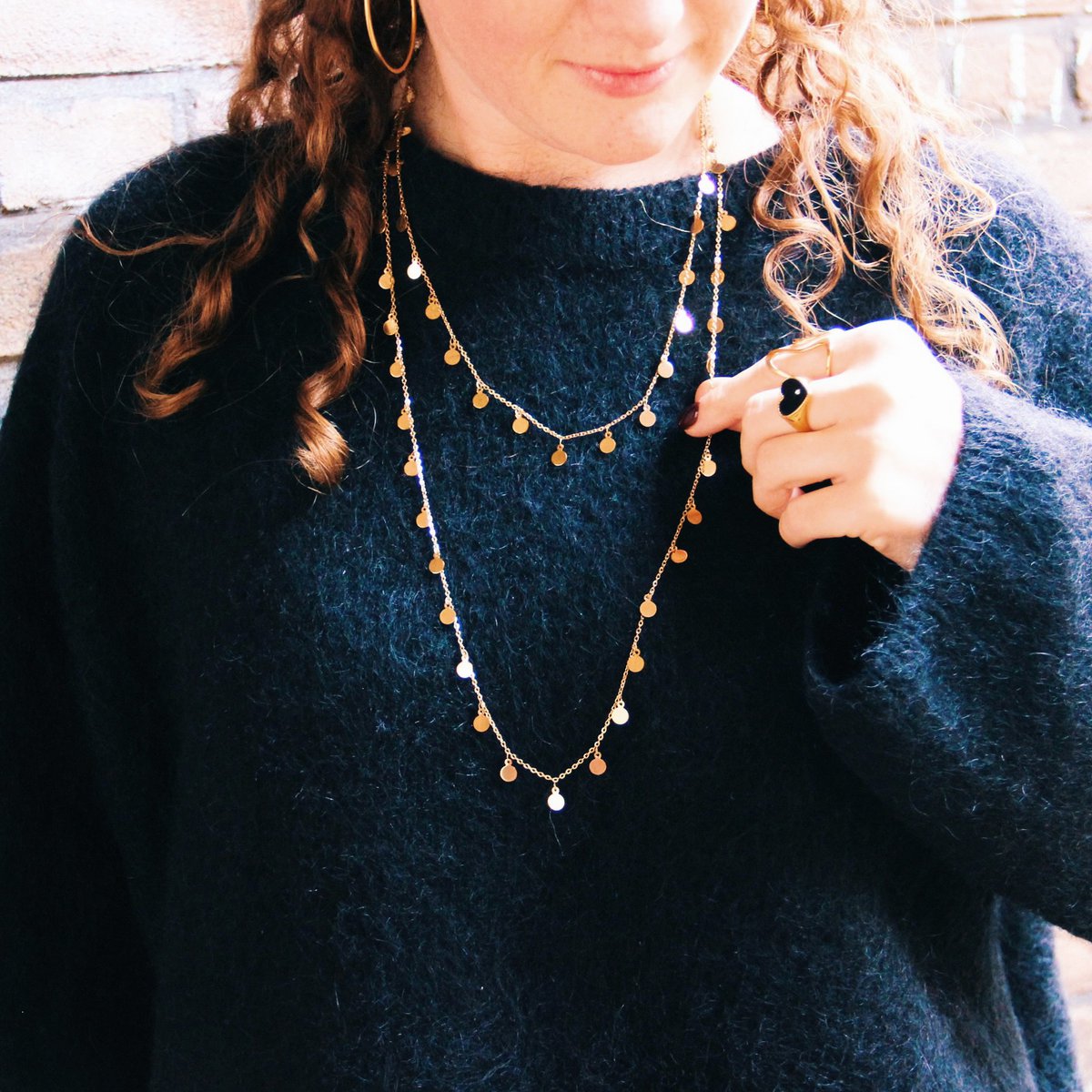 Diese lange Münzkette darf natürlich nicht fehlen und jetzt gibt es sie auch doppelt! Die Münzen und die Länge verleihen der Halskette eine coole Note.