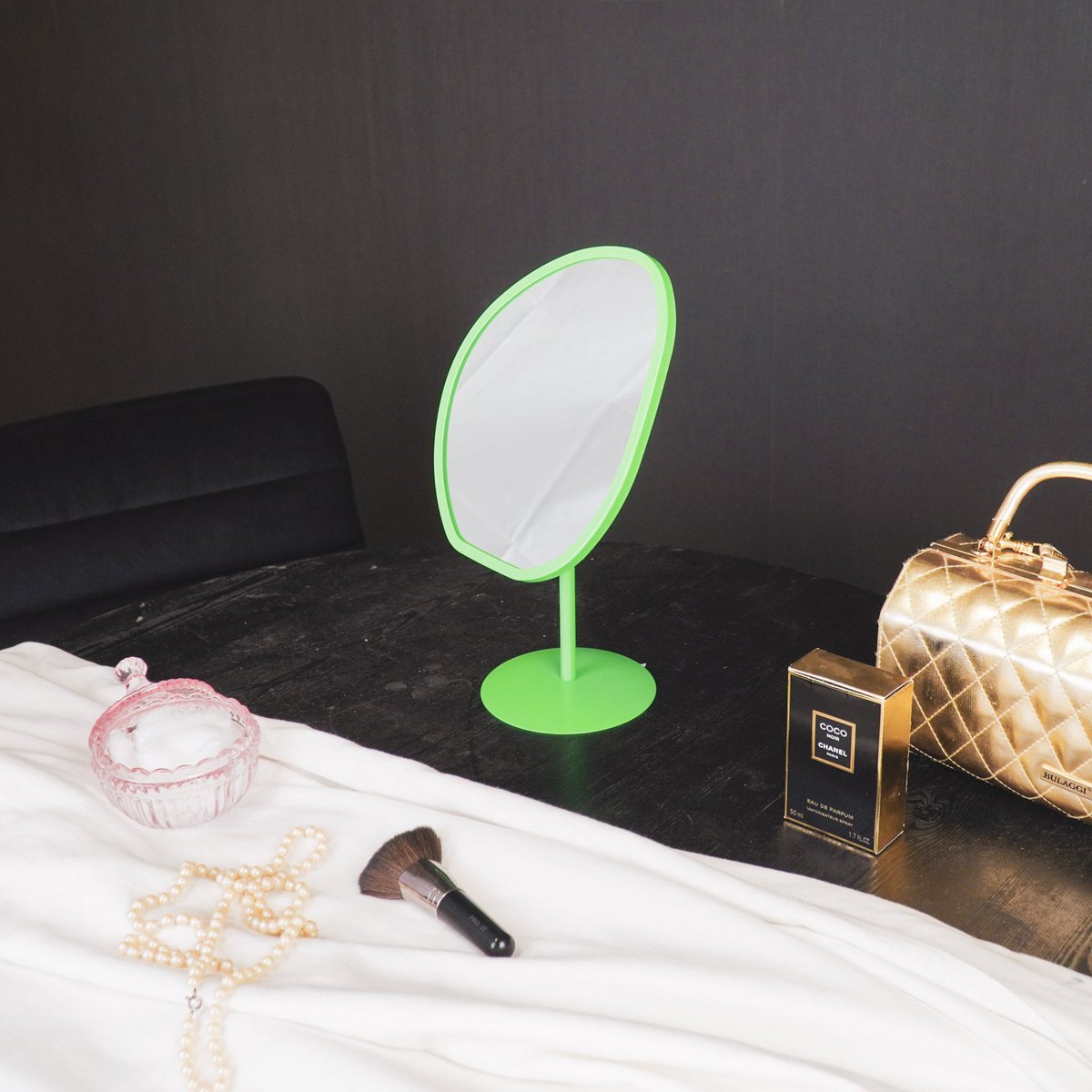 Dank des stabilen Standfußes steht der Spiegel sicher und lässt sich flexibel platzieren. Perfekt für Beauty-Routinen, als dekoratives Highlight oder als trendiges Accessoire in Schlafzimmer, Bad oder Flur.