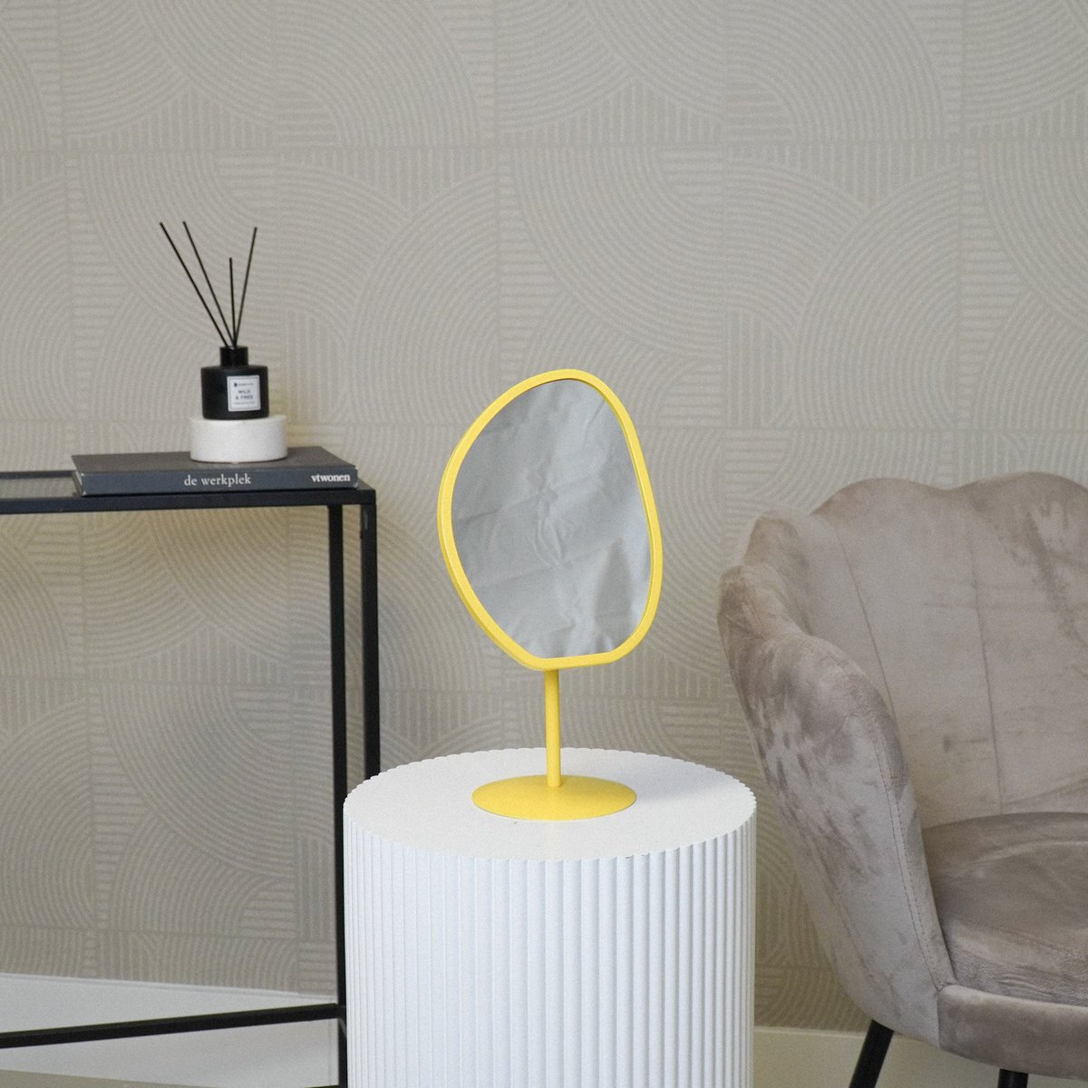 Dank des stabilen Standfußes steht der Spiegel sicher und lässt sich flexibel platzieren. Perfekt für Beauty-Routinen, als dekoratives Highlight oder als trendiges Accessoire in Schlafzimmer, Bad oder Flur.