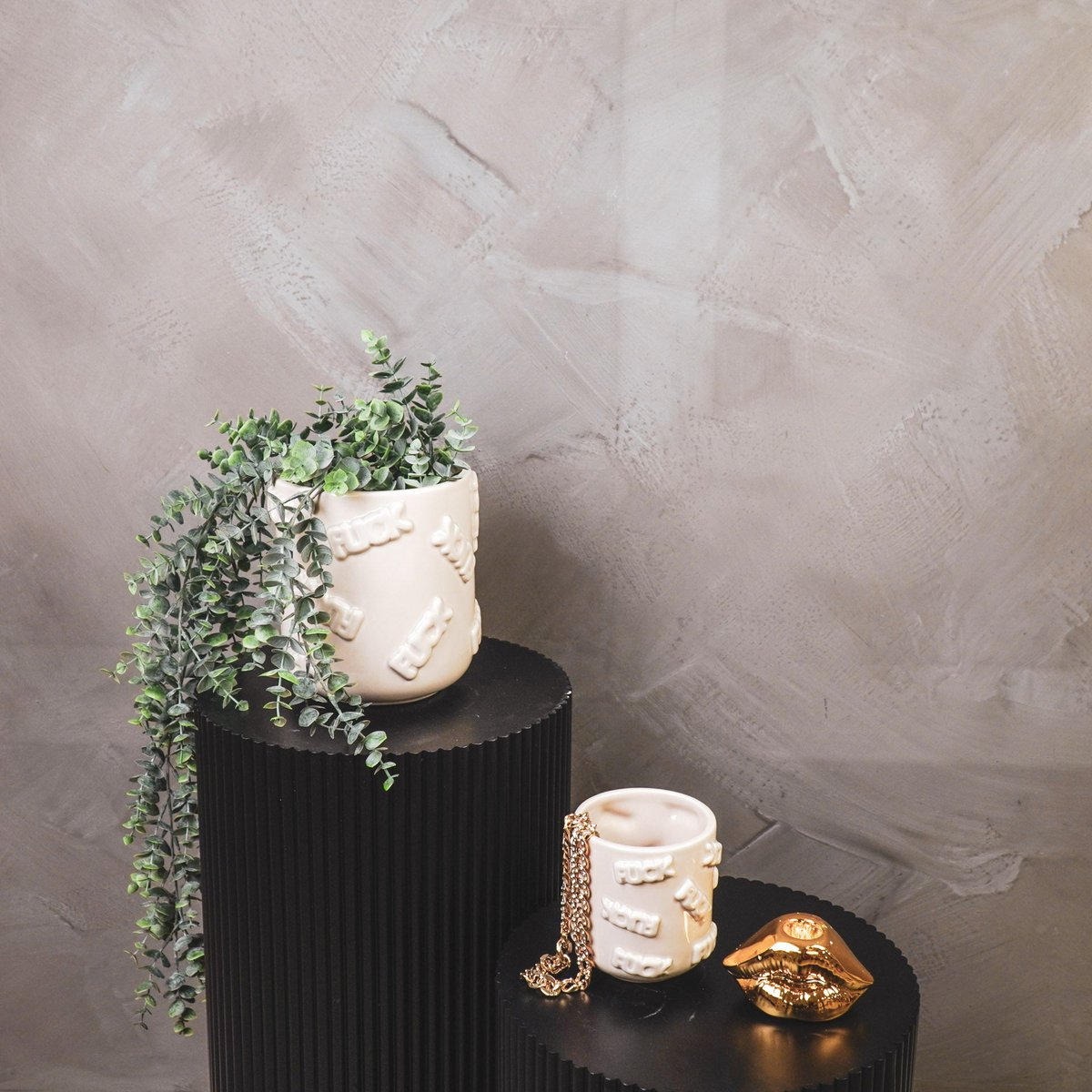 Topf "FUCK" Keramik - Beige - 11x11x11,5cm