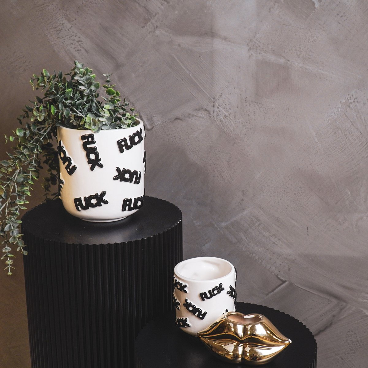 Topf "FUCK" Keramik - Weiß/Schwarz - 17,5x17,5x17,5cm